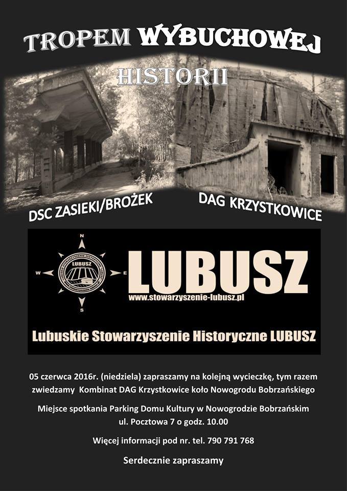 Jakiś czas temu na fejsbuniu zostałem przyjęty do grupy „Stowarzyszenie LUBUSZ i miłośnicy historii” i nagle 31 maja pojawiło się zaproszenie na wycieczkę „TROPEM WYBUCHOWEJ HISTORII” organizowanej przez ludzi ze stowarzyszenia pod przewodnictwem Dawida Stachowskiego. Nie pozostało nic innego jak napisać pod postem -„bede” … 16 minut później padła odpowiedź „i bardzo się cieszę” – aha są, żyją ! Jedziemy ! Czytaj dalej „Kombinat DAG Alfred Nobel Krzystkowice”